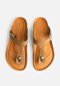 - Sandalia con puente nobuk con hebilla metálica de ajuste.