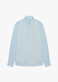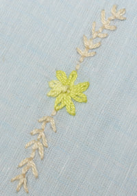 Camisa Bordada Lino Cuello Francés Azul Celeste