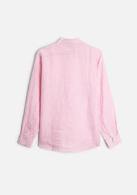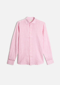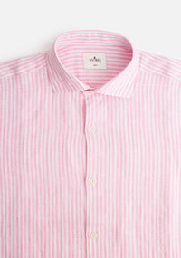 Camisa Canova Lino Cuello Frances Rayas Rosa - Blanco