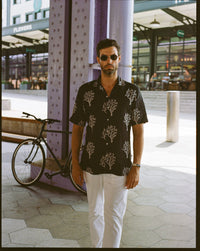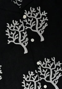Camisa Cubana Lino Bordado Corales Negro - Gris