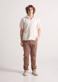 Nuestra camisa cubana está elaborada en 100% Lino ligero cuenta con una silueta tipo cajón, cuello recto y solapa, bolsillos en punta, manga corta y aberturas laterales. Es ideal para usar en climas cálidos porque su material principal se convierte en un inflable en cualquier guardarropa.
