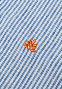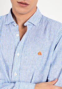 Camisa Lino Cuello Frances Rayas Medias Azul - Blanco