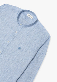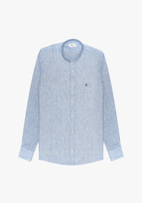 Camisa Lino Cuello Nerú Lineas Azul Delgadas