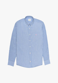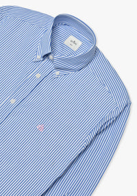 Camisa Rayas Medias Azul Medio - Blanco Cuello Button Down L-Ros