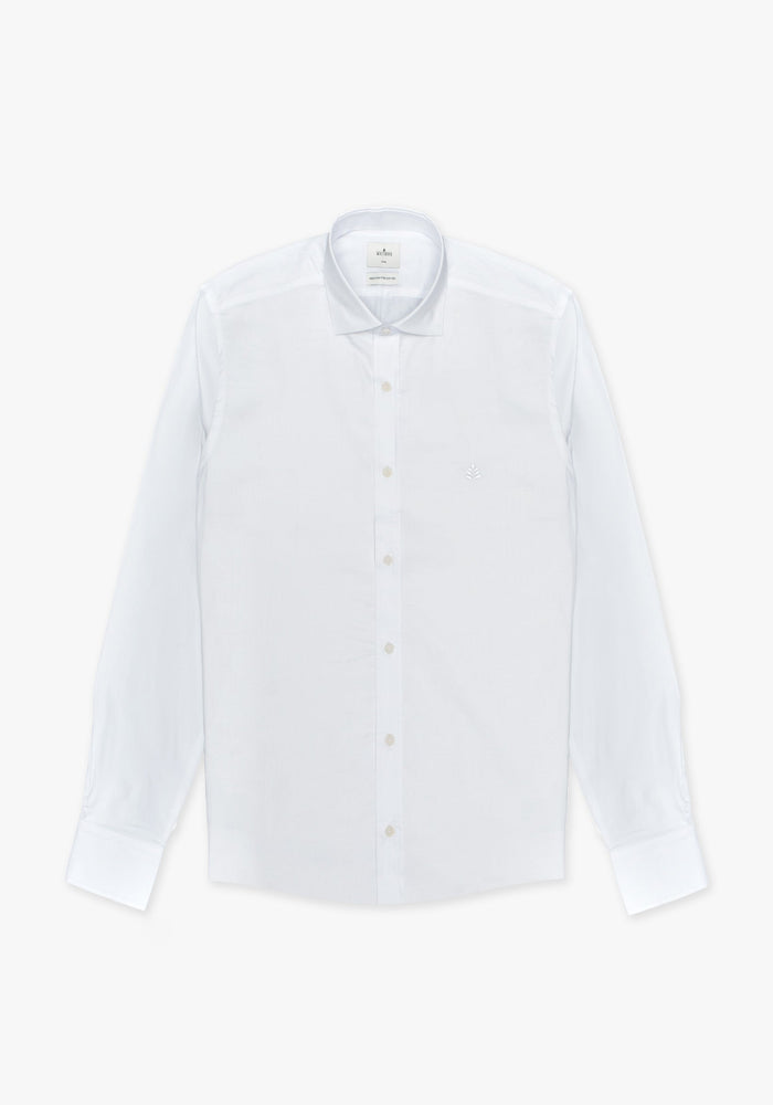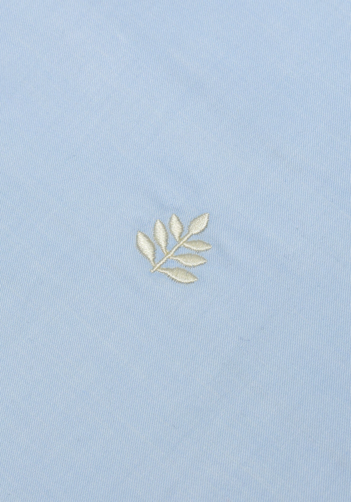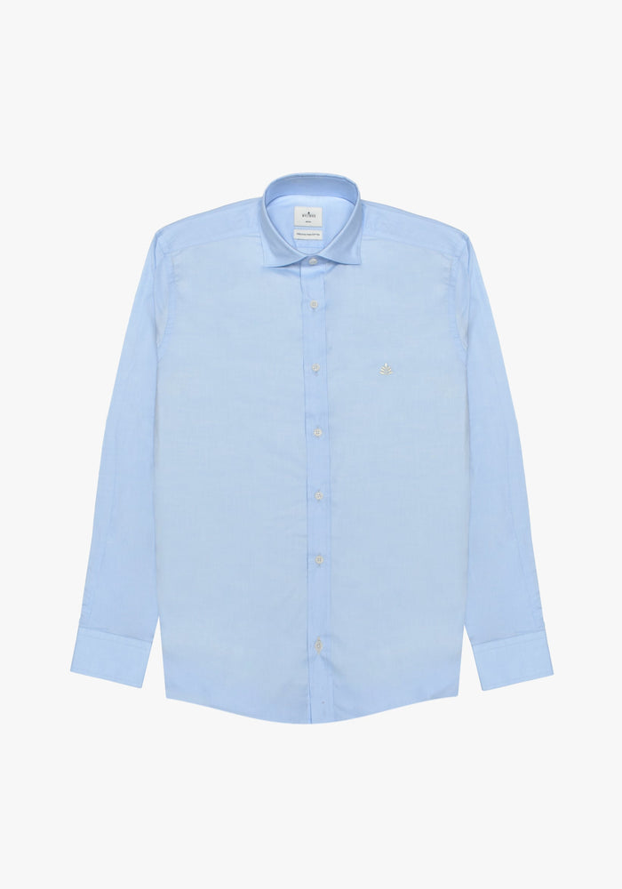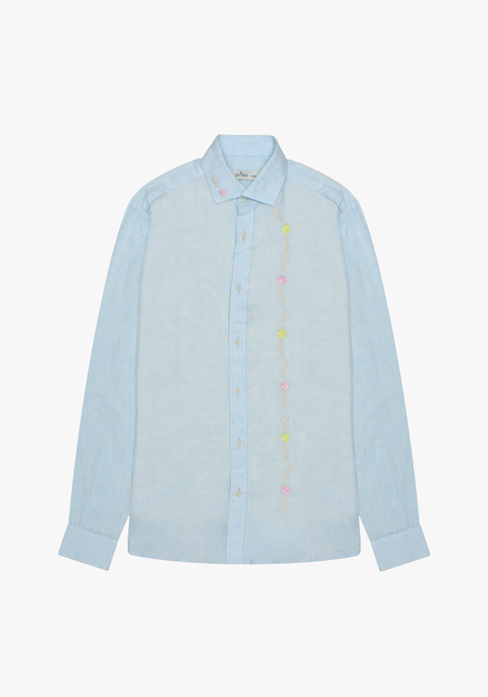 Camisa Bordada Lino Cuello Francés Azul Celeste