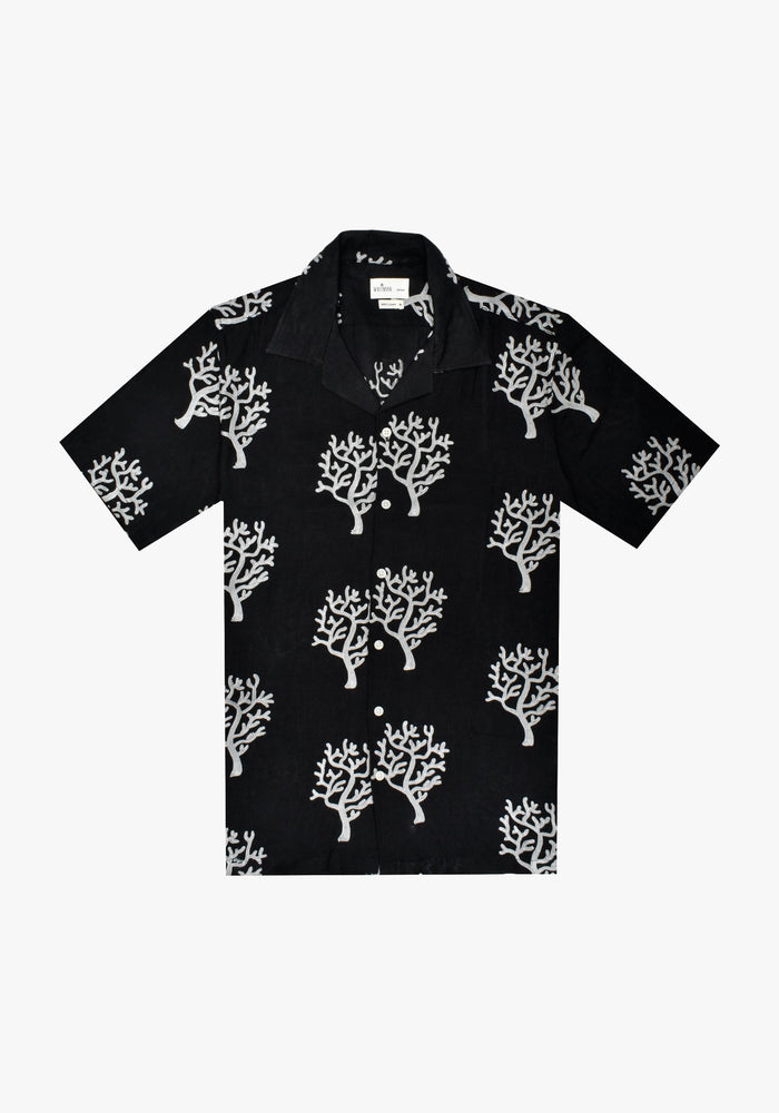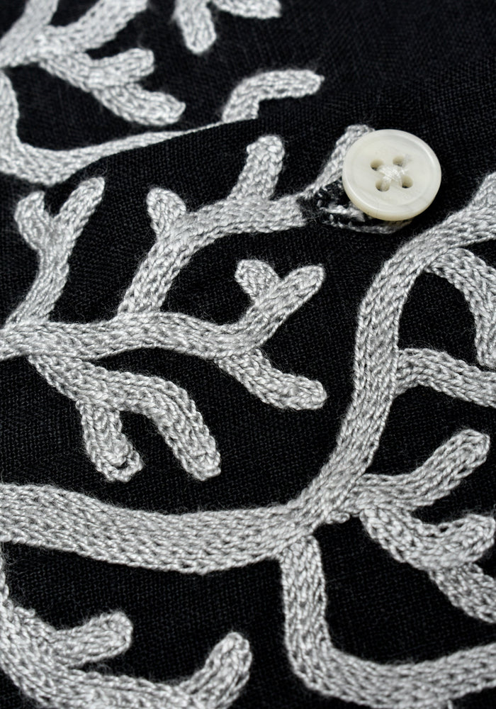 Camisa Cubana Lino Bordado Corales Negro - Gris