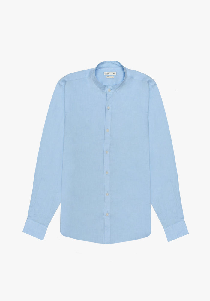 Camisa Lino Cuello Neru Azul Celeste