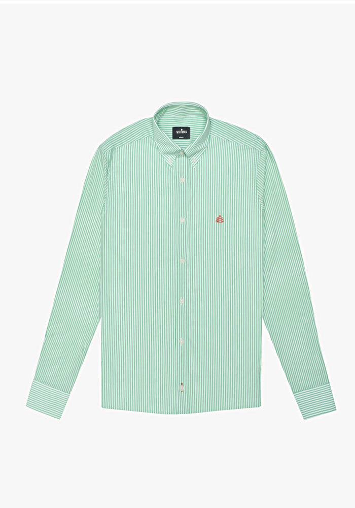 Camisa Whitman Líneas Verde Medio - Blanco Cuello Button Down
