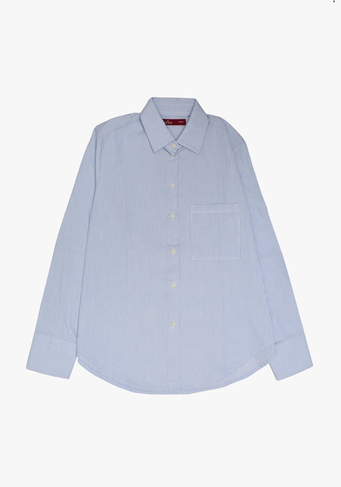 Blusa Clásica Bolsillo Líneas Del. Azul