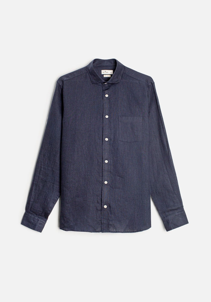 Camisa H Lino Unicolor Azul Osc.