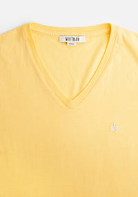 Una playera cuello “V” hecha con tela peruana y confeccionada en Colombia, horma regular fit y bordado de Whitman en el pecho.