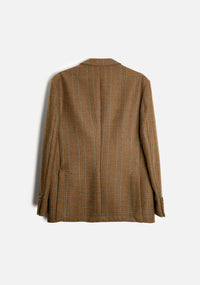Diseñado con solapa clásica, cuello y bolsillos con detalles en pasapunto, y botones elaborados en semilla de tagua, realzando su autenticidad. En su interior, destaca el medio forro tipo mariposa, vivos en contraste y una cuidada terminación con media luna en la sisa, reflejo de una confección impecable.