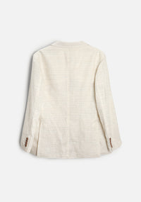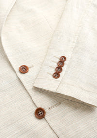 Este blazer desestructurado 100% lino es una prenda fresca, liviana y con mucha personalidad. Su diseño relajado conserva el toque clásico con cuello y solapa ancha, bolsillos de parche y botones en tagua que lo hacen especial.
