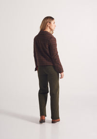 La chamarra Zaragoza en lana combina un estilo clásico con un toque moderno y audaz. Es una prenda versátil que puede complementar tanto looks casuales como más sofisticados.