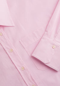 Su cuello camisero con pespunte, pechera con doblez externo y sus botones frontales en pechera aportan estructura. Incorpora un bolsillo tipo parche en el pecho, mangas largas con abertura y puños con botón, detalles que elevan su carácter clásico.