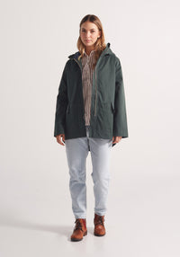 La chamarra Shelley esta inspirada en el tradicional raincoat. Desarrollada con materiales ultra resistentes, una combinación entre Tencel, Nylon y algodón, en el interior el forro 100% diseñado en PET reciclado, el cual permite comodidad y frescura.