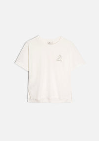 El cuello en RIB cuenta con pespunte y refuerzo interno, mientras que las mangas y el ruedo cuentan con terminación en collarín de dos agujas para mayor durabilidad, reflejando nuestra filosofía del Slow Made. Una prenda versátil y artística gracias a su estampado, pensada para quienes buscan llevar siempre un pedacito de verano.