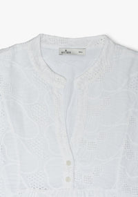 El Vestido Areia es perfecto para el verano, ya que su tejido 100% en ojalillo proporciona comodidad y elegancia. Destaca por su cuello tipo nerú y su tejido floral que añade un toque especial.