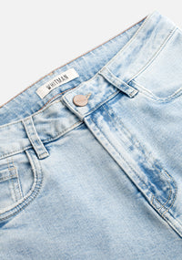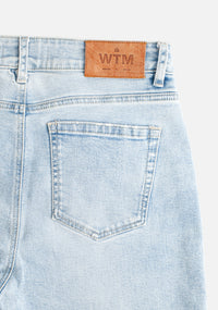 Este pantalón de mezclilla está tejido con algodón elástico y tratado con un lavado desarrollado a medida para lograr un aspecto vintage.